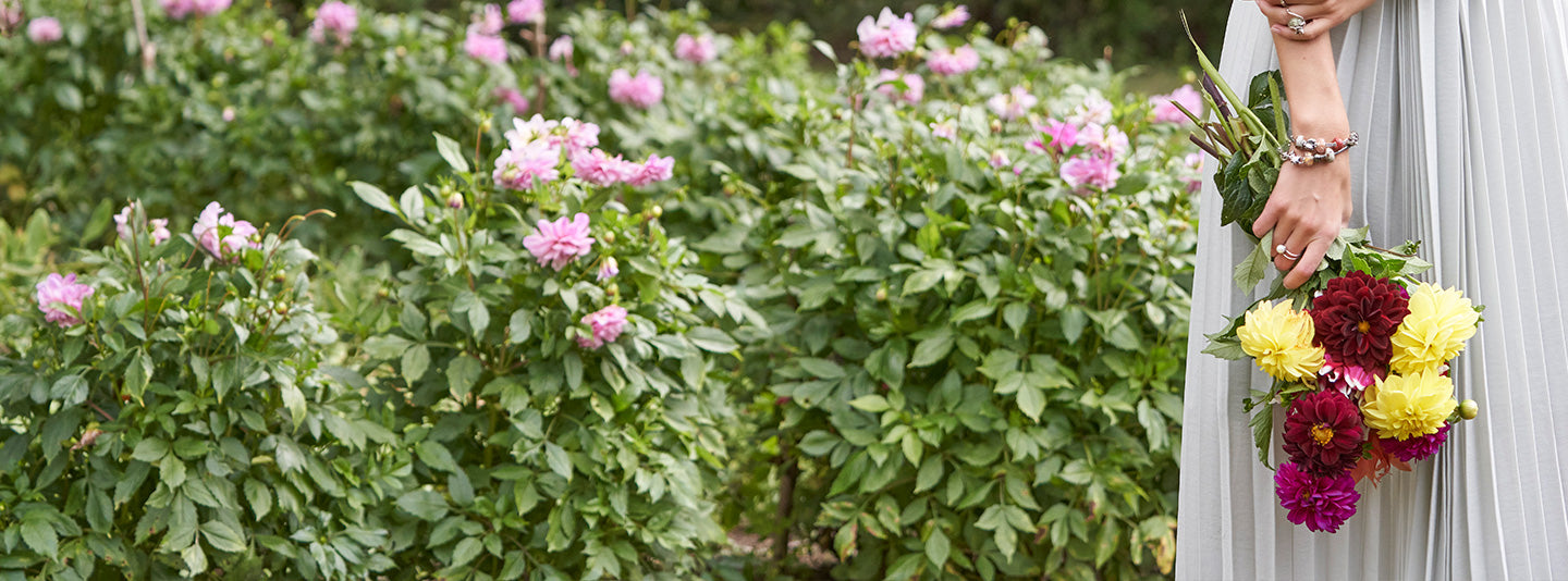 Flower garden with model wearing Trollbeads jewellery