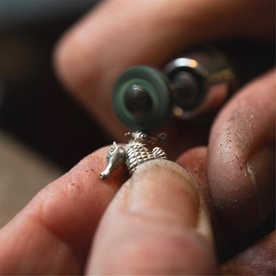 Nos perles en argent sont fabriquées selon une technique vieille de 3 000 ans, qui consiste à créer à la main de petites pièces d'art à partir de cire et de métaux précieux. La perle Gardien d'hippocampe est fabriquée en argent 925.