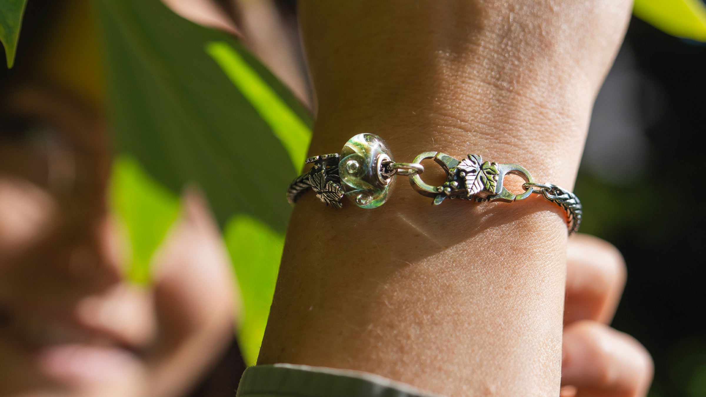 Limited Edition bracelet including a clasp, silver bead and glass bead inspired by the chestnut tree Limited Edition bracelet including a clasp, silver bead and glass bead inspired by the chestnut tree