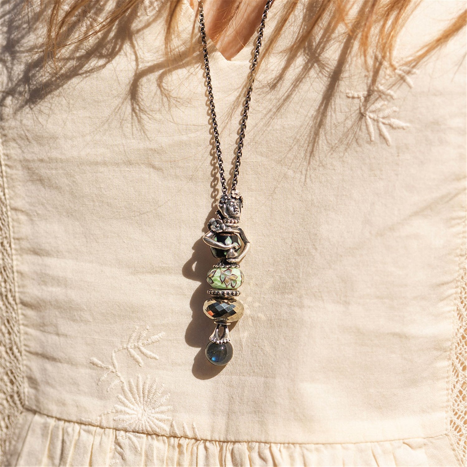 Elle tient l'amour près d'elle, se tordant et se tournant avec le rythme de la vie. Amusez-vous à habiller le Collier Fantaisie du Gardien de l'Amour avec vos perles préférées et regardez-les se balancer en harmonie 🍃✨Laissez-le évoluer avec vous, une perle à la fois.