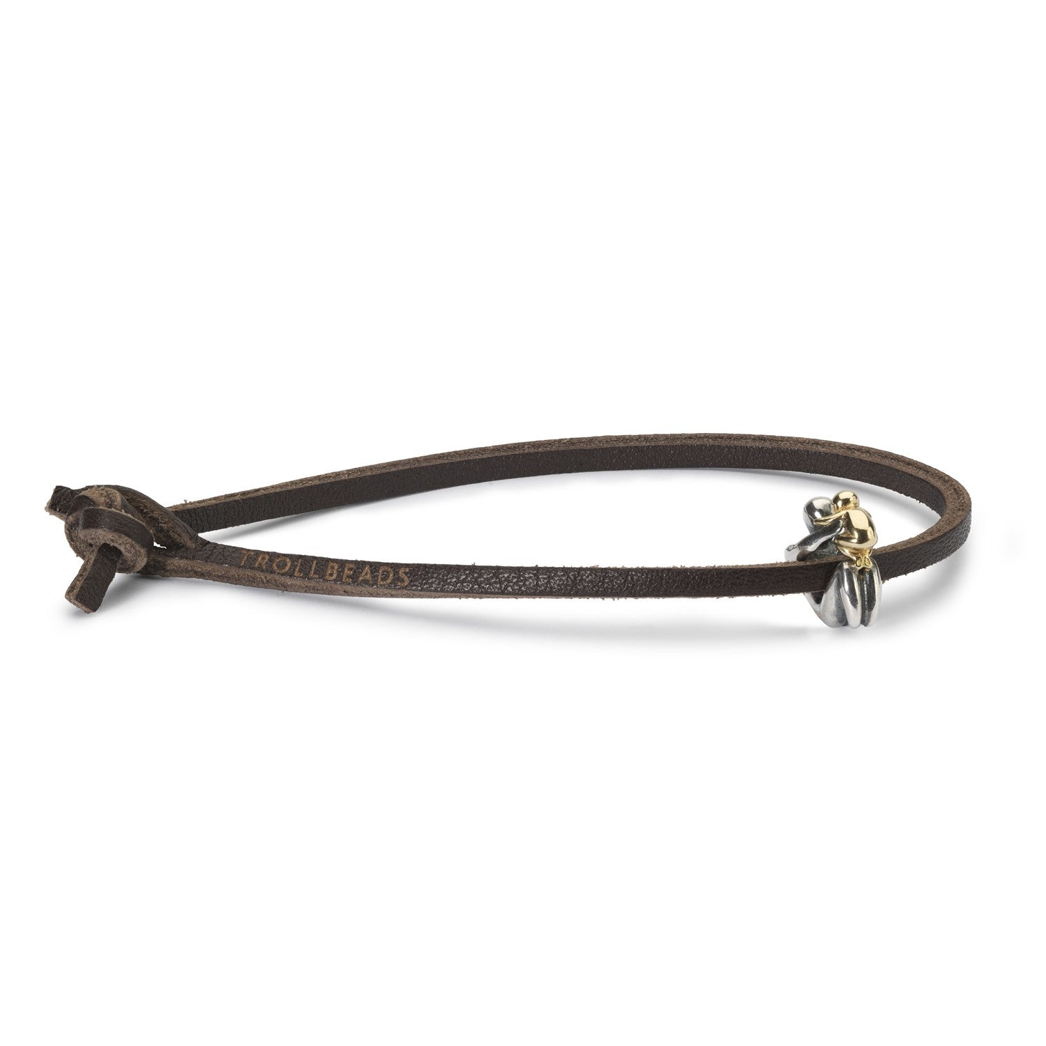 Ce sont les plus petits pieds qui laissent les plus grandes empreintes dans nos cœurs. Abandonnez-vous à la paternité. À un amour jamais ressenti auparavant. Laissez ce bracelet en cuir marron, orné d’une perle Paternité en or 18 carats et Argent Sterling, représenter le bonheur de la nouvelle vie qui entre dans la vôtre. Le bracelet est d’une longueur généreuse, ce qui permet de nouer un nœud à l'une de ses extrémités. L’emplacement du nœud détermine la longueur du bracelet. Attachez le bracelet à votre poignet en faisant glisser le nœud dans la boucle à l’autre extrémité. Vous pouvez toujours détacher le nœud pour ajouter d'autres perles au bracelet et continuer votre histoire.